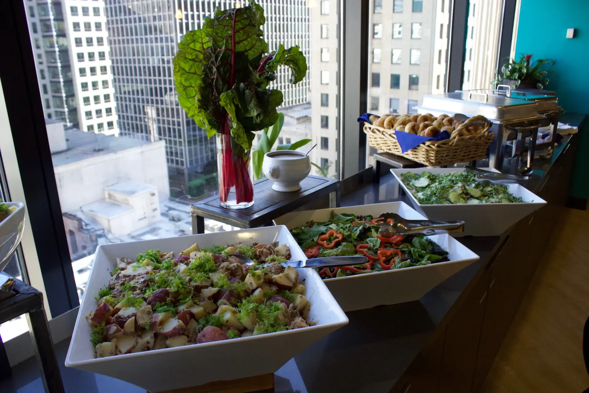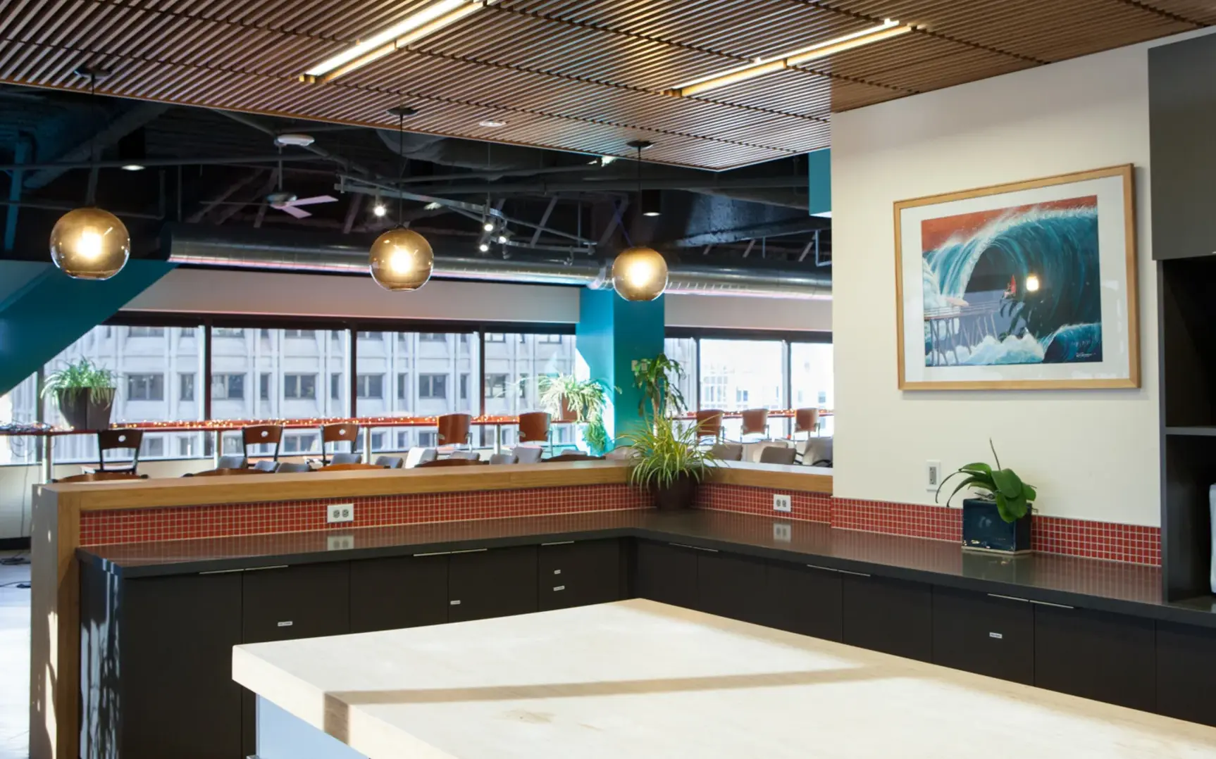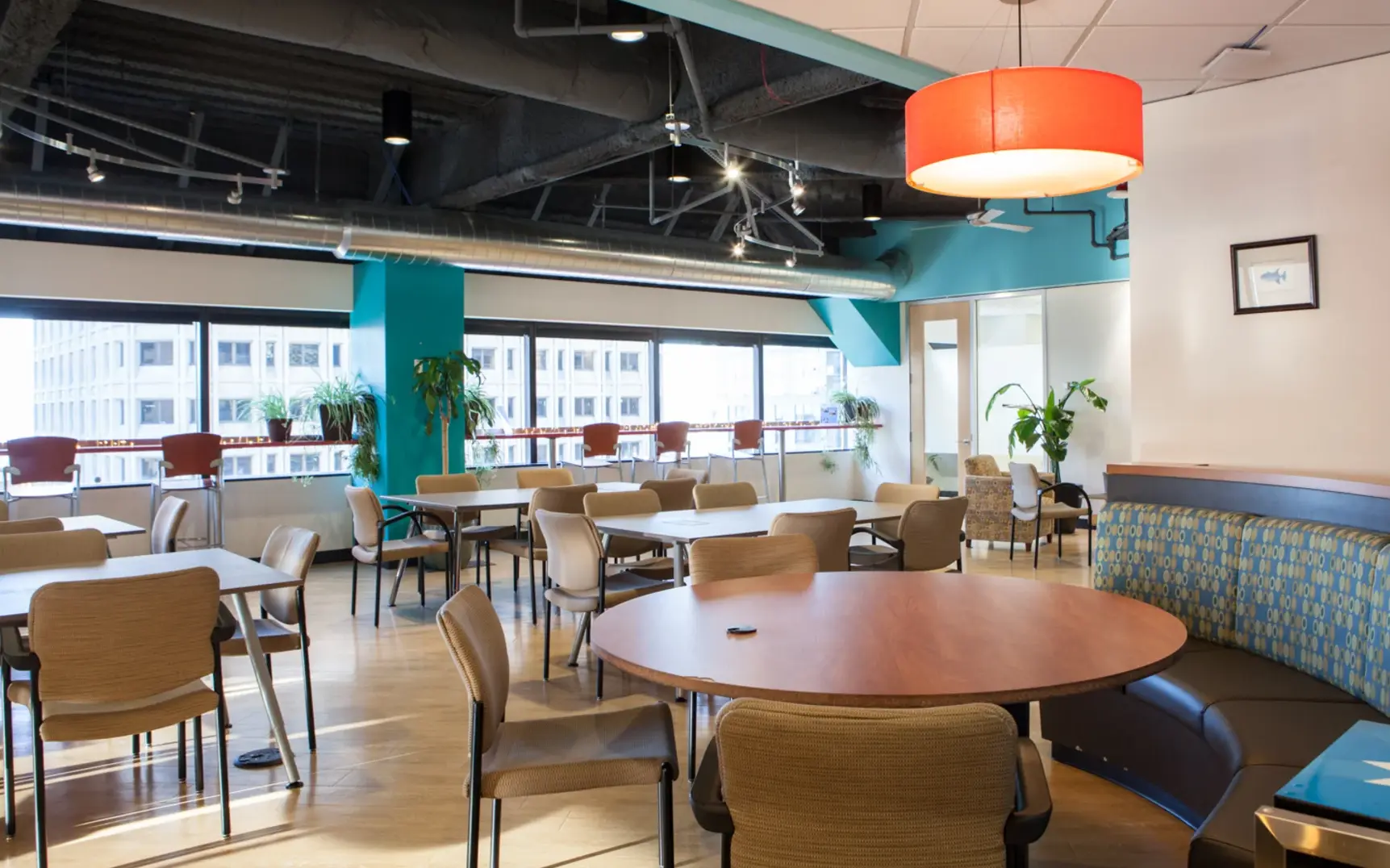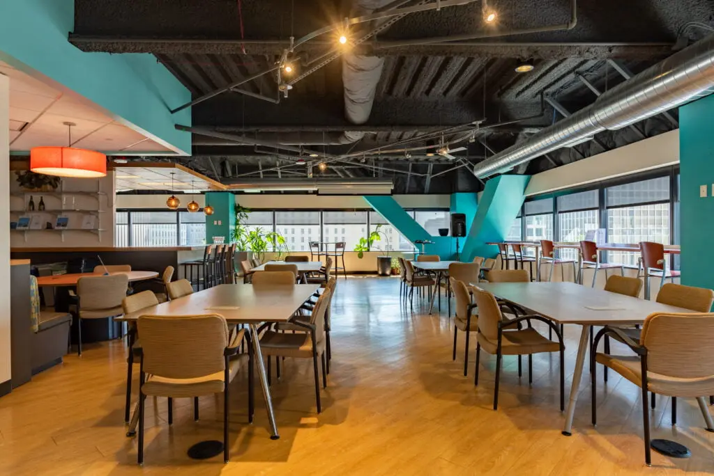 The attached kitchen handles catering needs while large windows provide natural light and those memorable Seattle views your guests will talk about. Located in downtown Seattle with professional AV equipment ready to go, the Café takes the stress out of event planning.