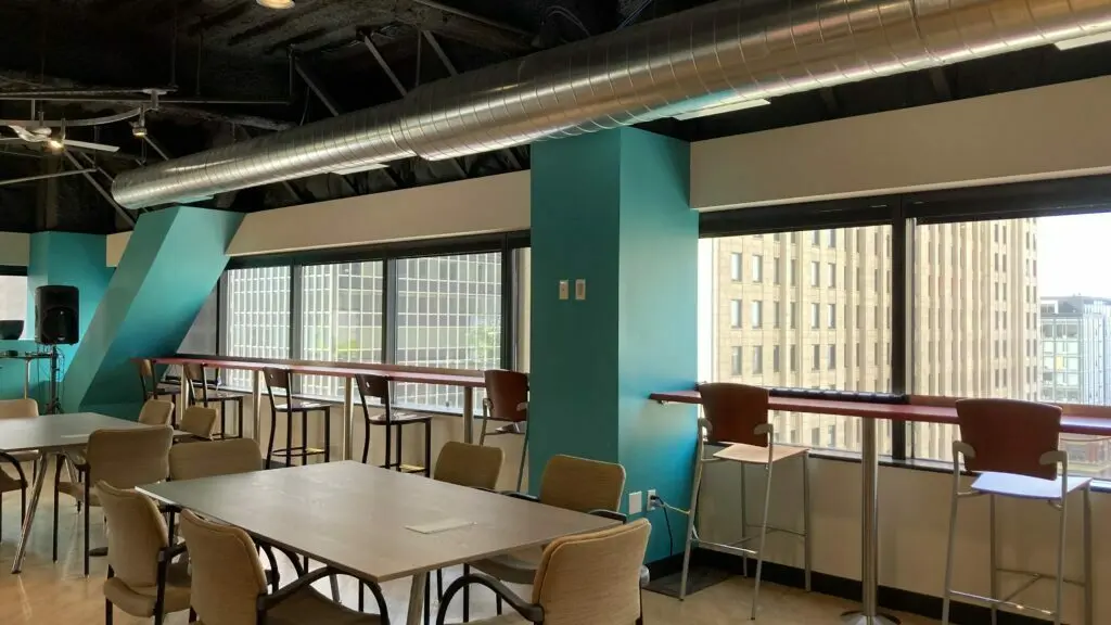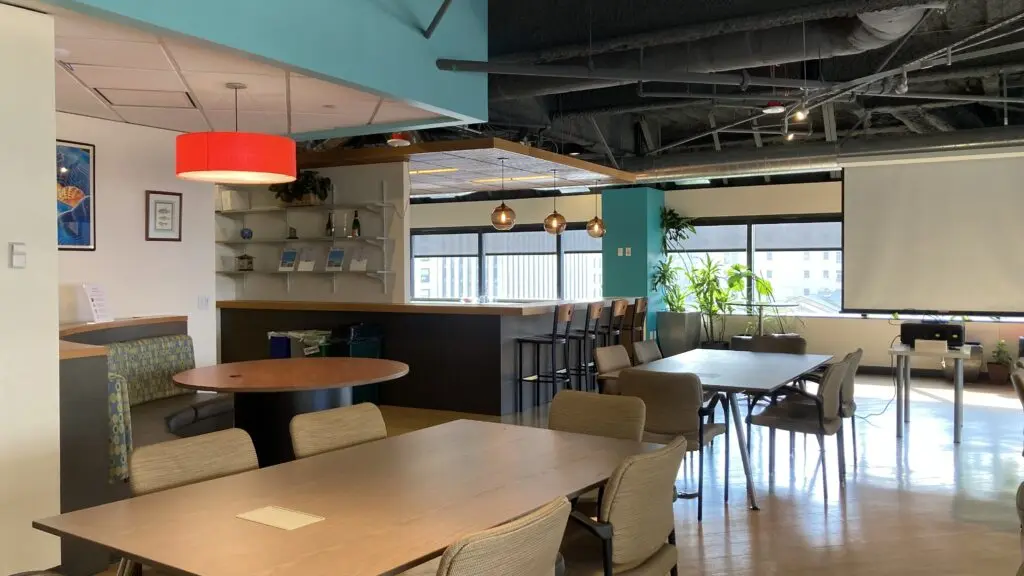 The SURF Café is a versatile event venue accommodating up to 100 people with stunning waterfront and city views that create an impressive backdrop for any gathering. This spacious room works for everything from corporate presentations to networking events, with flexible layouts that adapt to your specific needs. Choose from theater-style seating, classroom setup with tables, or standing reception arrangements.